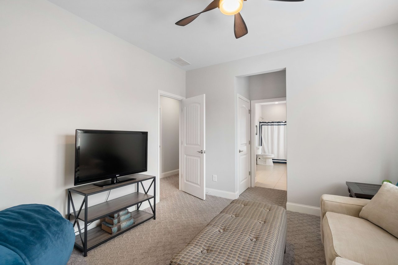 Prepare to be stunned by this beautiful Craftsman-style home in the heart of Johns Creek, located just minutes from shops, restaurants, parks, and more. The front entrance welcomes you with a spacious foyer, in addition to a separate dining room and secondary flex space that would be perfect for a home office. The open-concept kitchen features stainless steel appliances, granite countertops, a walk-in pantry, a breakfast bar, and a separate eat-in area. The great room is in view of the kitchen and is perfect for entertaining or winding down, with its stacked stone fireplace and custom built-ins. The primary bedroom features enough space for a seating area, tray ceilings, separate vanities, a tub and separate shower, and dual walk-in closets. The additional 2 upper bedrooms feature walk-in closets and share a jack-and-jill bath. Upstairs also has a flex space that is currently being used as a home office but the opportunities are endless. It doesn't stop there, the finished and open basement also has its own large bedroom and walk-in closet with its own family/flex space. The backyard is fenced and includes a deck overlooking the yard perfect for summer evenings or a morning coffee. This is one home you won't want to miss out on!
